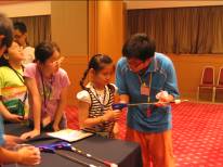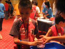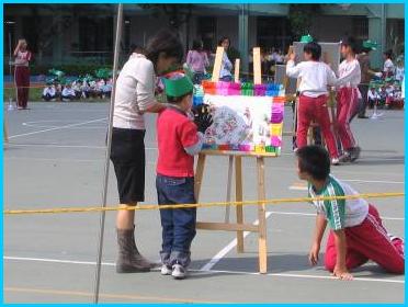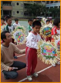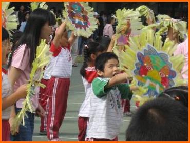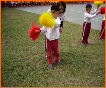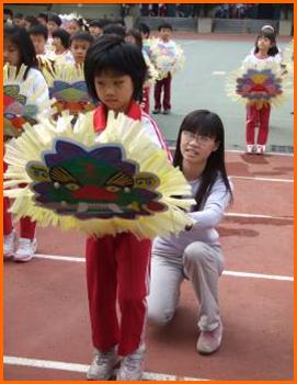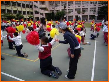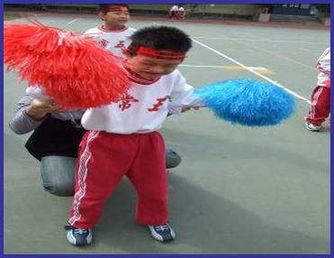 每年的體育表演會為學校的大活動,每一年級都為此活動全心全意地投入練習,希望能在表 演會當天呈現最完美的演出。視障學生於此活動中,除了可學習肢體方面的內容外,亦可瞭解團隊合作的重要,但因視障學生缺乏視覺的模仿,而有學習上的困難。因此在協助學生準備、練習時,會先建立學生的活動概念,讓學生先瞭解活動進行步驟及內容,並依學生能力給予肢體協助或是口頭指導。經過反覆練習後,有部分學生可於活動當天獨立完成活動內容,有部分學生需要同儕、口語及肢體方面的協助以完成活動。 |