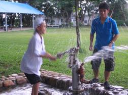在動物園巧遇的兩位學生,開心地打招呼 |